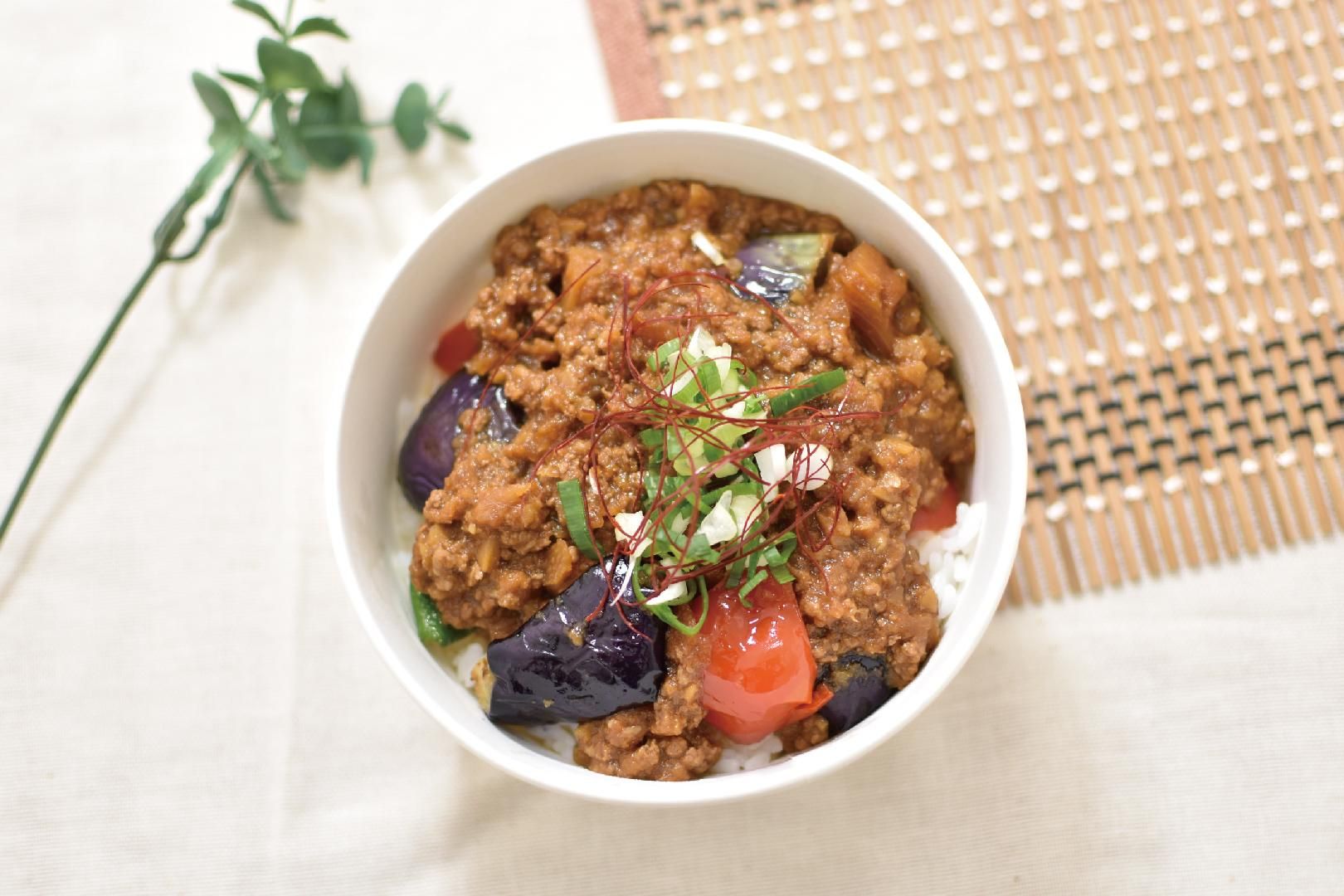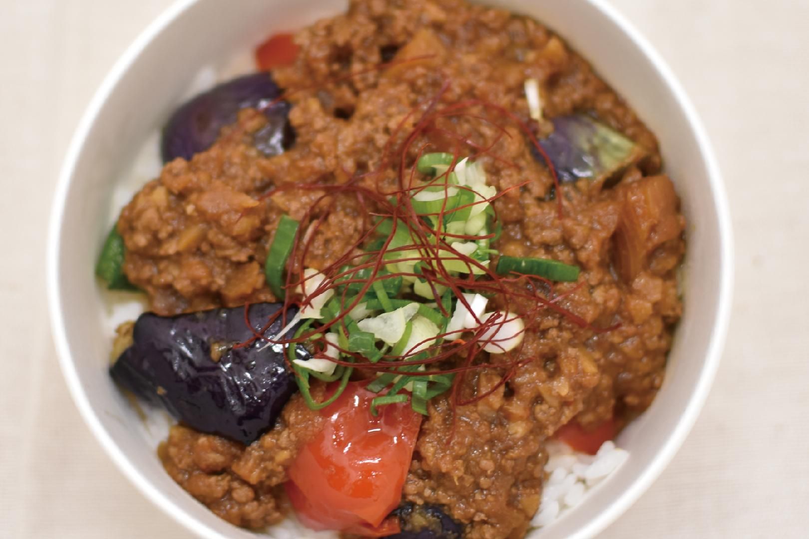 ナスと和えた肉味噌は、意外とアッサリの味付けで食べやすくなっています!スタミナも付きますよ!