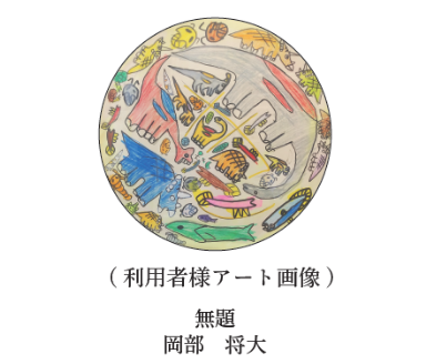 このコースターは、障がいのある方が日々の活動において作成されたアートをデザインとして取り入れております。皆さまが手に取っていただくことで、デザイン作成の利用者様の生きがいと自信に繋がり、また、商品づくりに携わる利用者様の工賃向上に繋がります。この機会に、他には無い個性豊かな商品をご利用ください。
